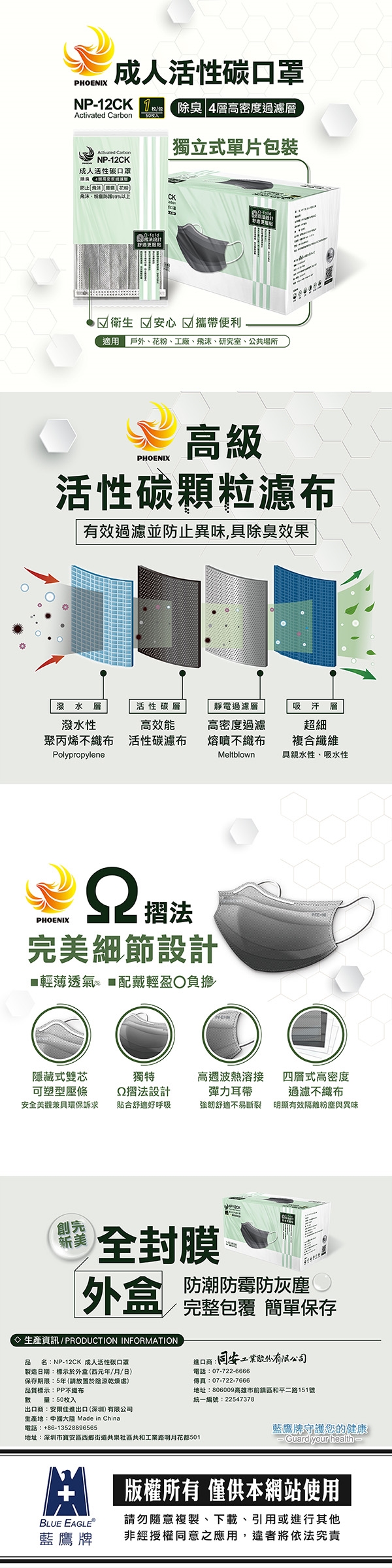 商品名稱:成人活性碳平面口罩(單包裝)