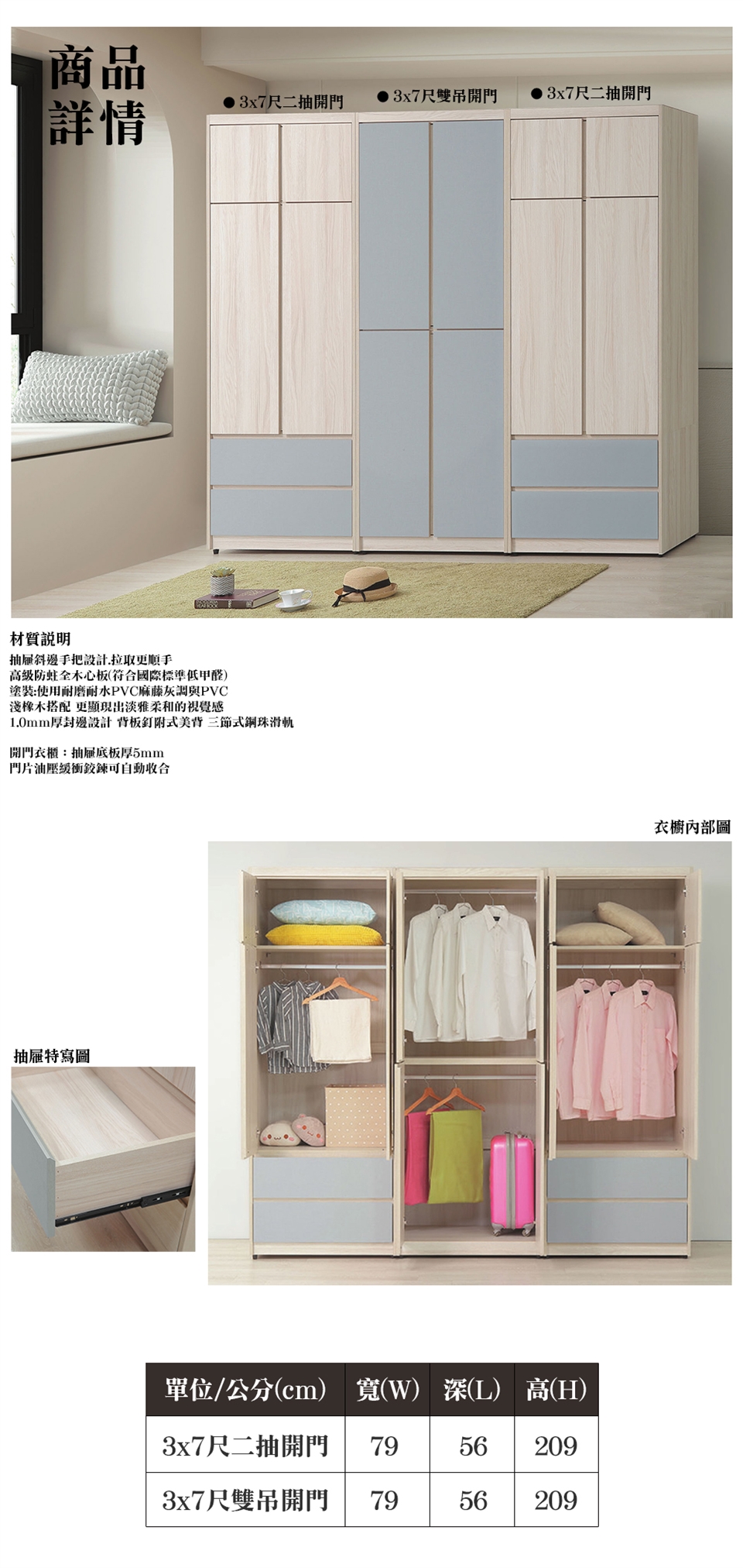 ※此賣場僅販售 恩格斯3x7尺開門二抽衣櫥※