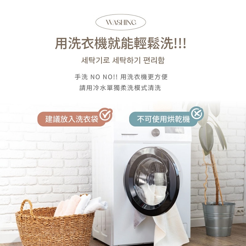 整件機洗建議放入大型洗衣袋內,以自然晾乾為佳。