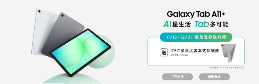 Galaxy Tab A11+ 新登場:2025/11/13 12:00 - 12/31 23:59止 ( 購買Galaxy Tab A11+ 兌換發票憑證需在此期間內)