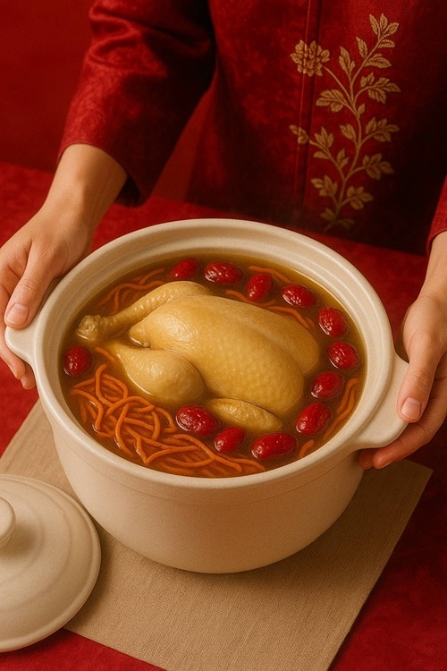精選鮮甜活蝦,浸泡紹興醇香酒汁,口感鮮嫩滑順,入口即化,帶來年節喜氣的鮮美開胃。黃金蟲草雞湯 2000g (固形物900g)