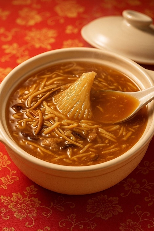 精選豐腴豬蹄膀,搭配爽口筍絲,燉煮至入口即化,肥而不膩,承載傳統年菜的溫暖記憶。真魚翅羹 1000g (固形物300g)
