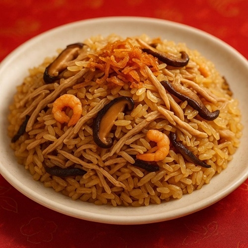 酥炸小白鯧,淋上酸甜糖醋醬汁,色香味俱全,寓意年年有餘,好運連連。古早味油飯 1000g