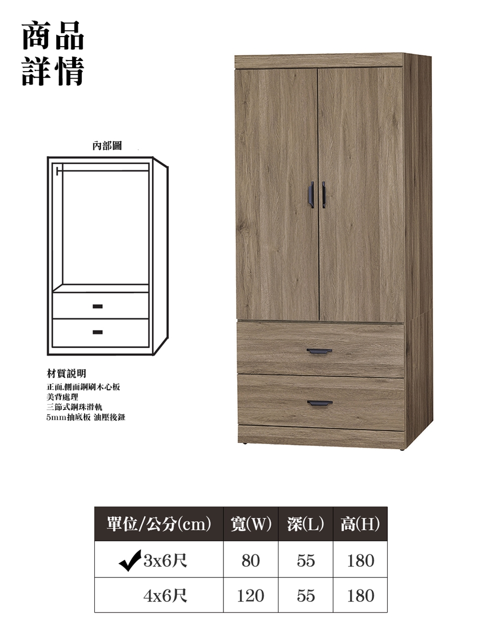 ※此賣場僅販售 瑞亞3x6尺雙門二抽衣櫥(灰橡色)※