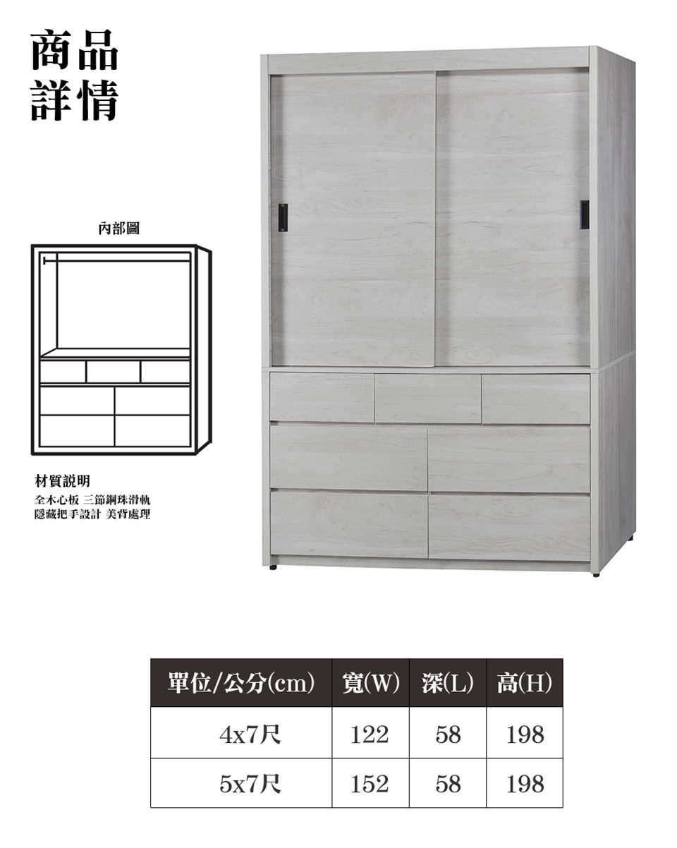 ※此賣場僅販售 梗玫兒4x7尺推門七抽衣櫥※