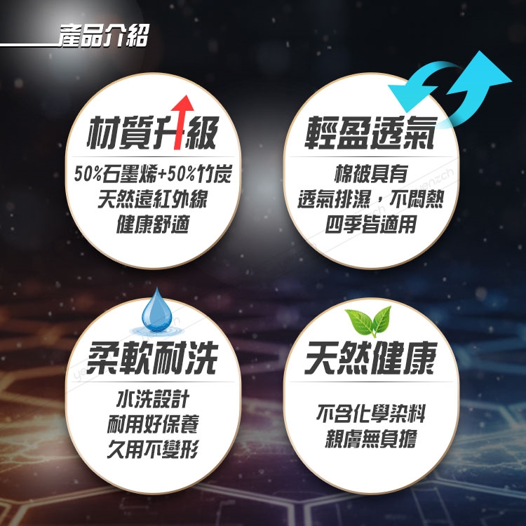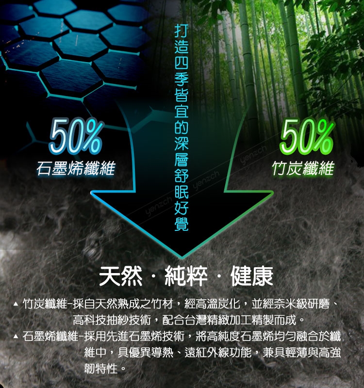 品名:源之氣 Yenzch 石墨烯&竹炭保暖棉被/可水洗