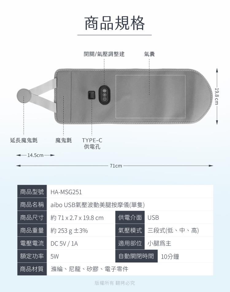 aibo 三段氣壓 USB氣壓波動美腿按摩儀(單隻)
