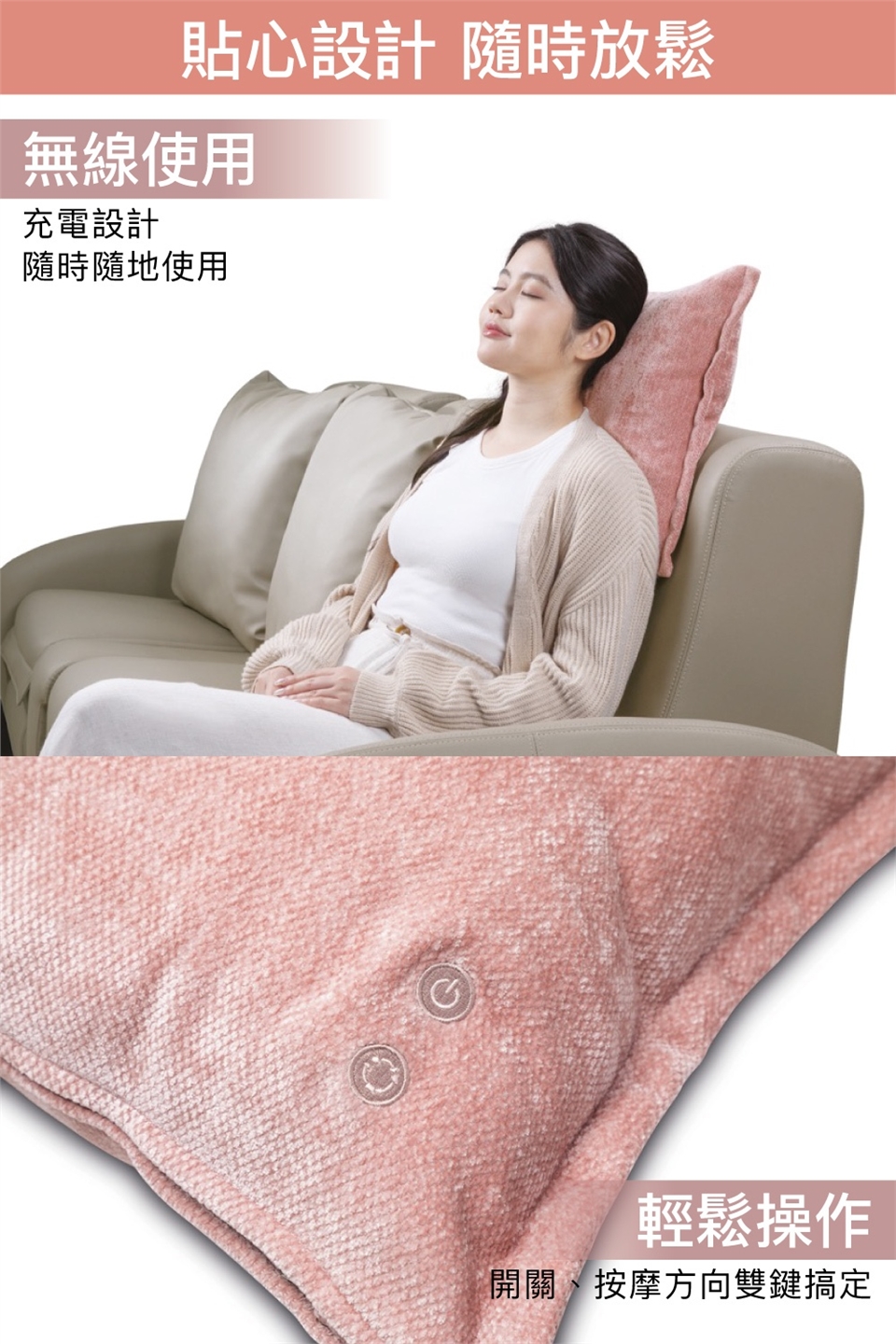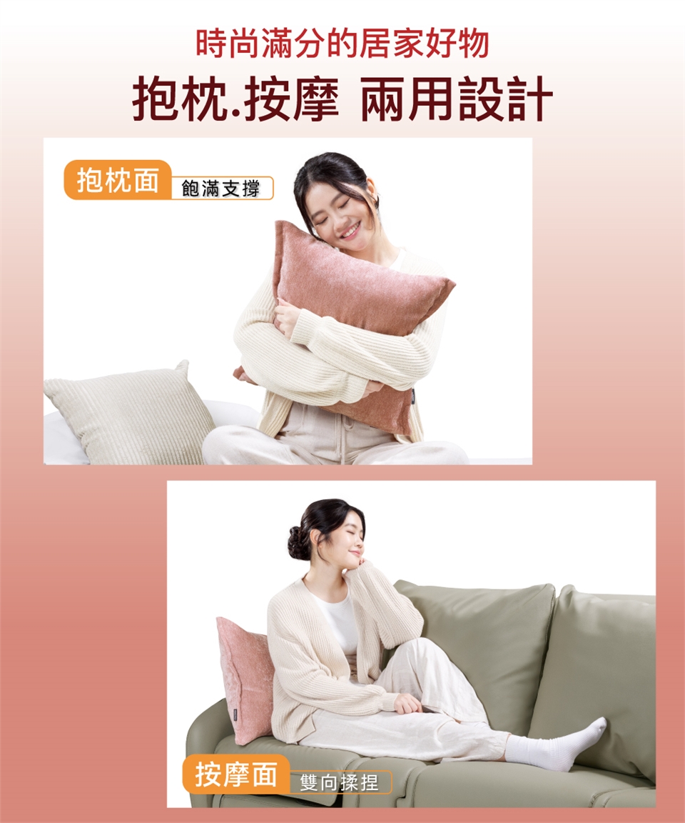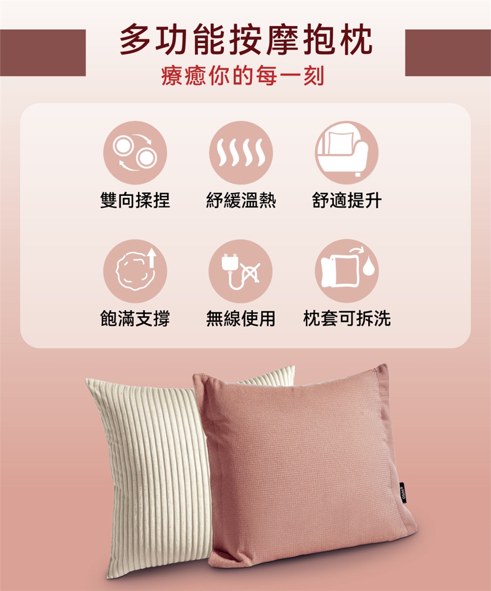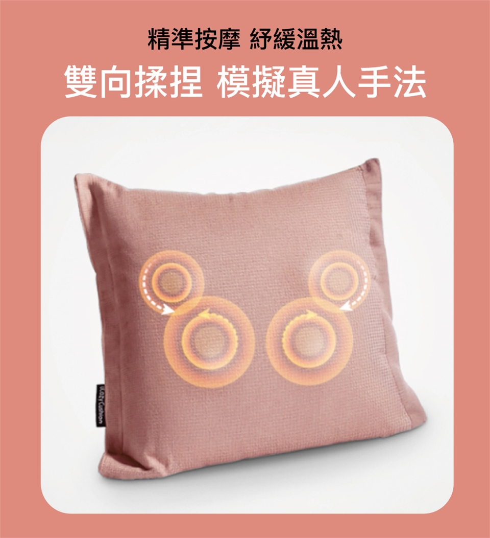 「雙向揉捏 × 紓緩溫熱 × 枕套可拆洗」