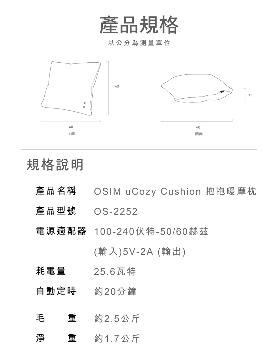 ·    抱枕厚實支撐、按摩仿真人按摩手法