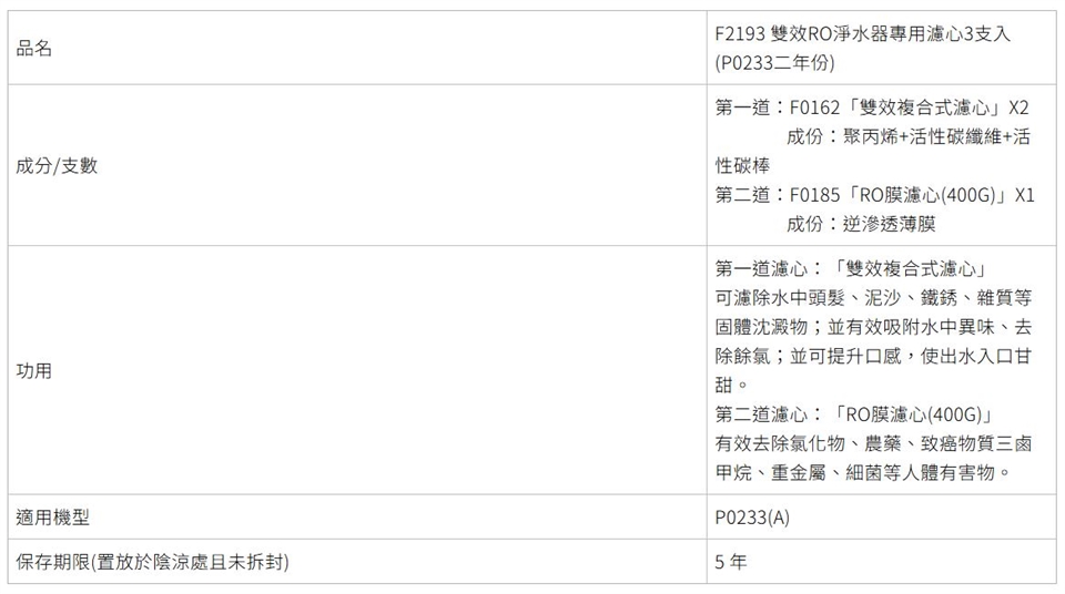 第一道:F0162「雙效複合式濾心」X2
