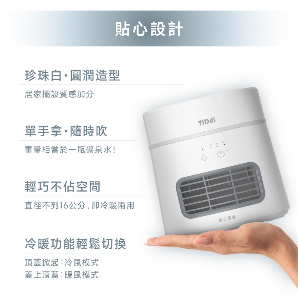 機身小巧可塞進行李箱,0.8kg無感負重。民宿夏天冷氣太弱?冷風隨傳隨到 冬天沒暖氣?3秒噴湧暖流,立刻感受體感上升5度的包覆感,也可定時1~7小時。一年四季皆實用!!!