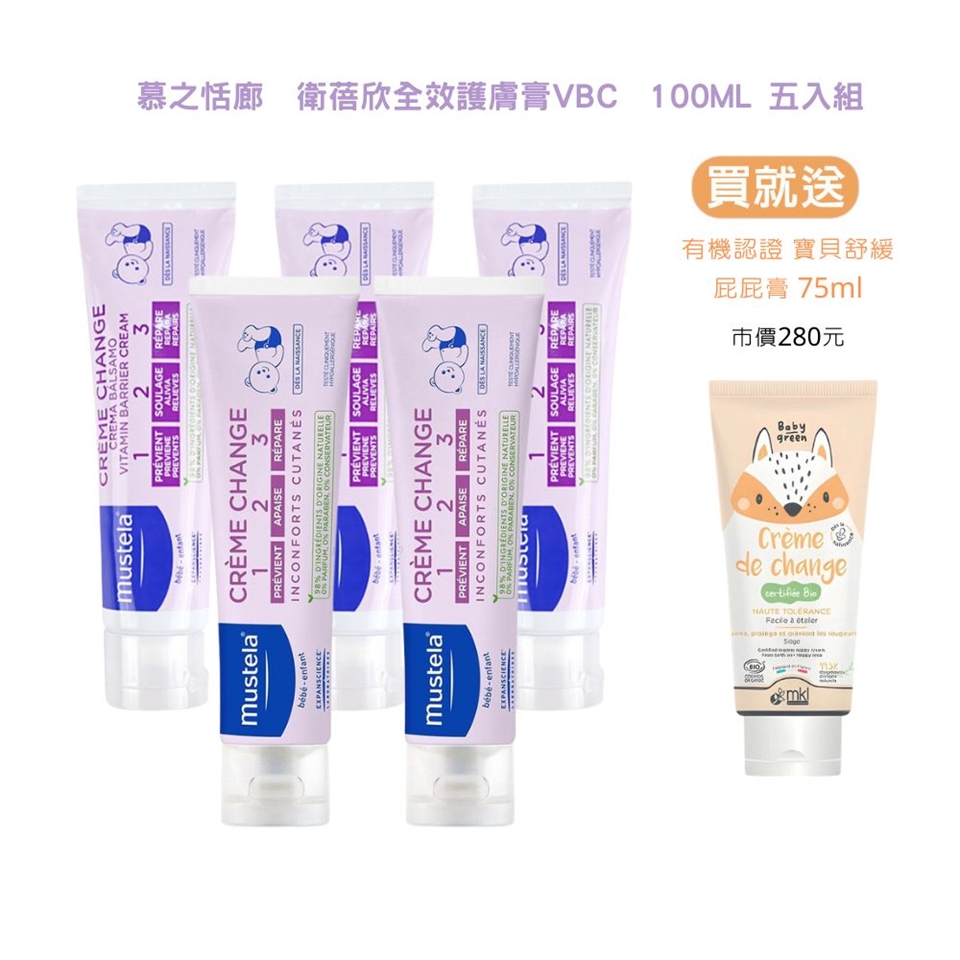 【超值5入組】Mustela 慕之恬廊 衛蓓欣全效護膚膏 100ml×5(平行輸入)+贈 MKL 嬰幼兒 舒緩屁屁膏 75ml(官方代理)