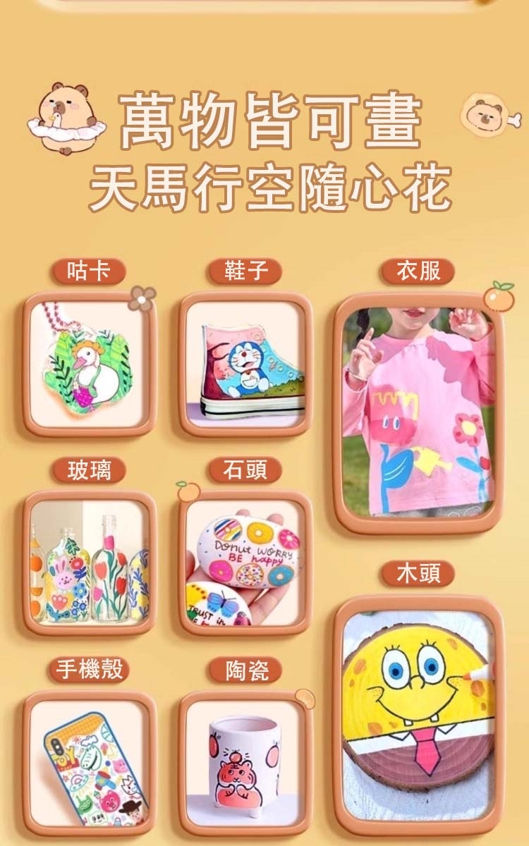 - 丙烯質地,覆蓋力強且不易掉色。