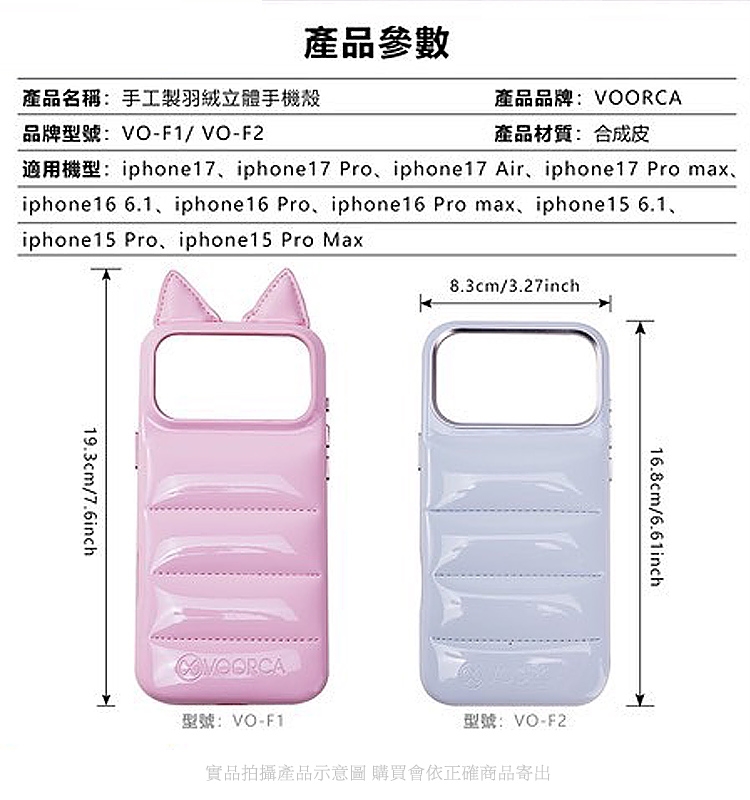 VOORCA VO-F1 iPhone 17 Air 6.5 手工製羽絨立體手機殼-耳朵版