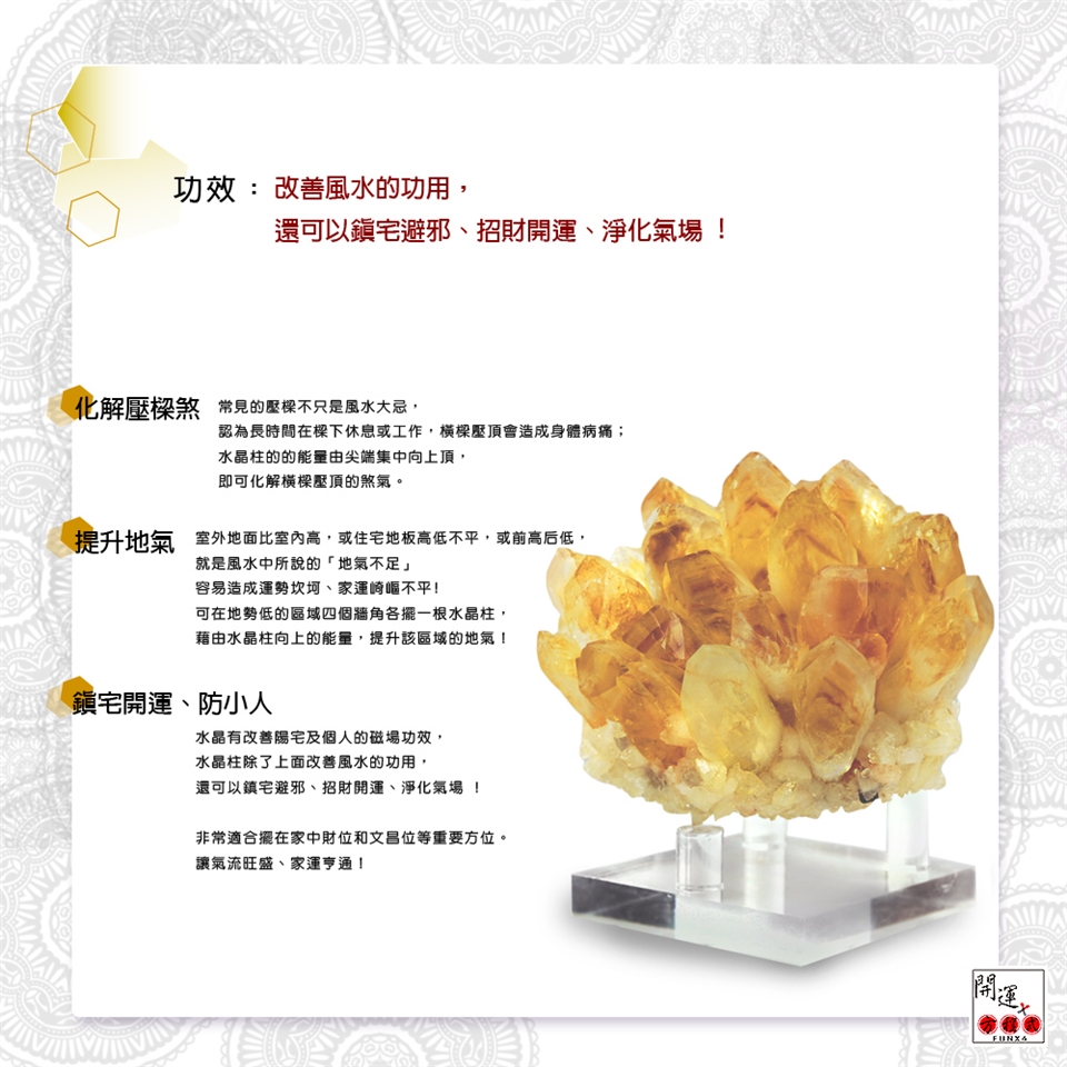 1、黃水晶是快樂、健康、財運的象徵,它可以調整人們的情緒,使人變得沉著冷靜,並且心情舒暢,經常配戴黃水晶的人自信心強更快樂。