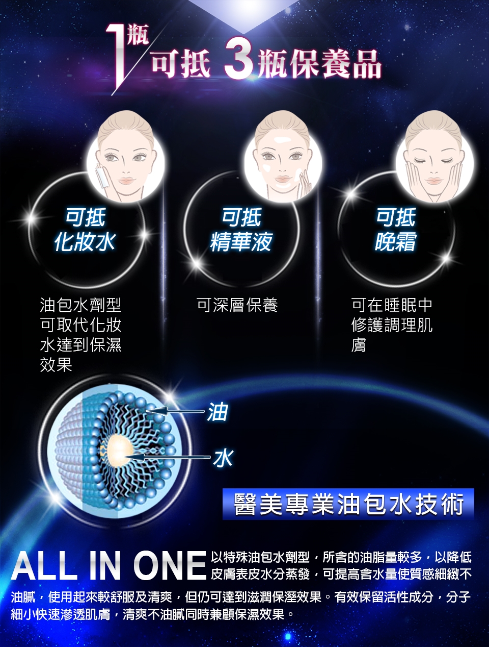 每天早晚使用於化妝水及精華液之後,取適量塗抹於臉部肌膚,輕輕按摩直到吸收。