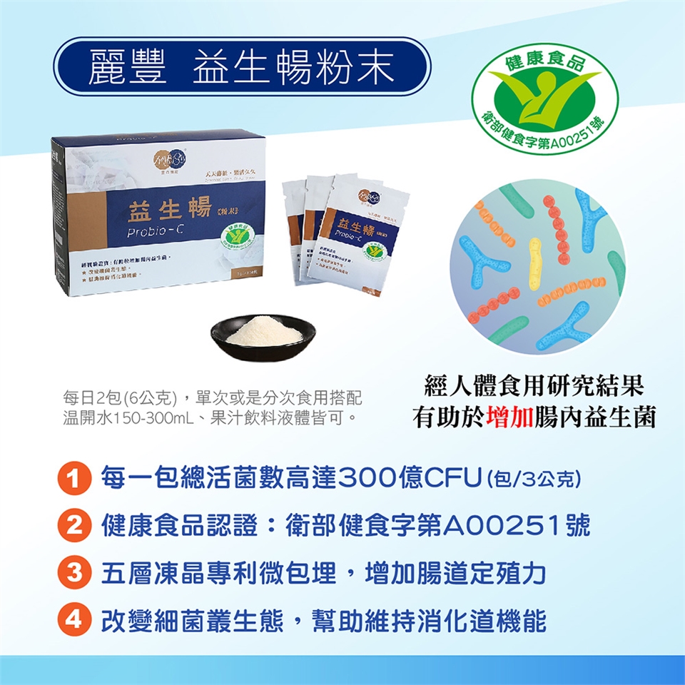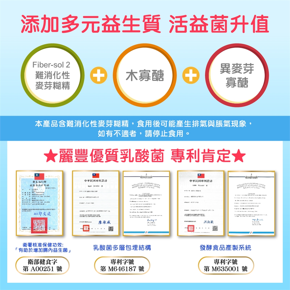 適用對象:幫助維持消化道機能、改變細菌叢生態、健康維持、使排便順暢。