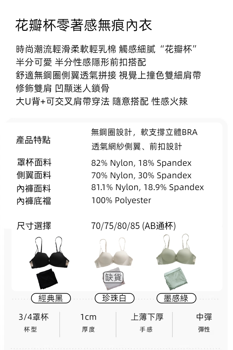 3. 優惠商品恕無提供內衣襯墊、肩帶、背勾、修改索取等服務,敬請見諒。