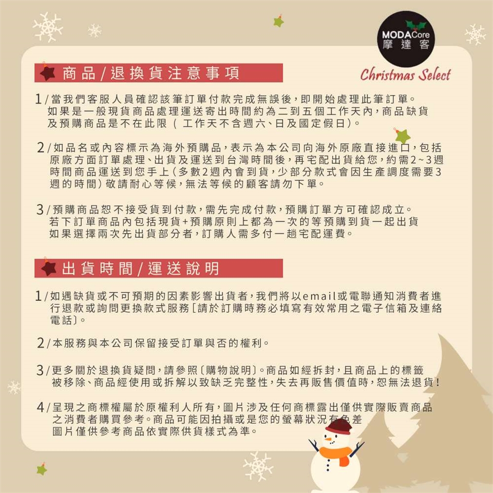 ※ 商品如經拆封且商品上之標籤被移除、商品經使用、或拆解以致缺乏完整性及失去再販售價值時,恕無法退貨!