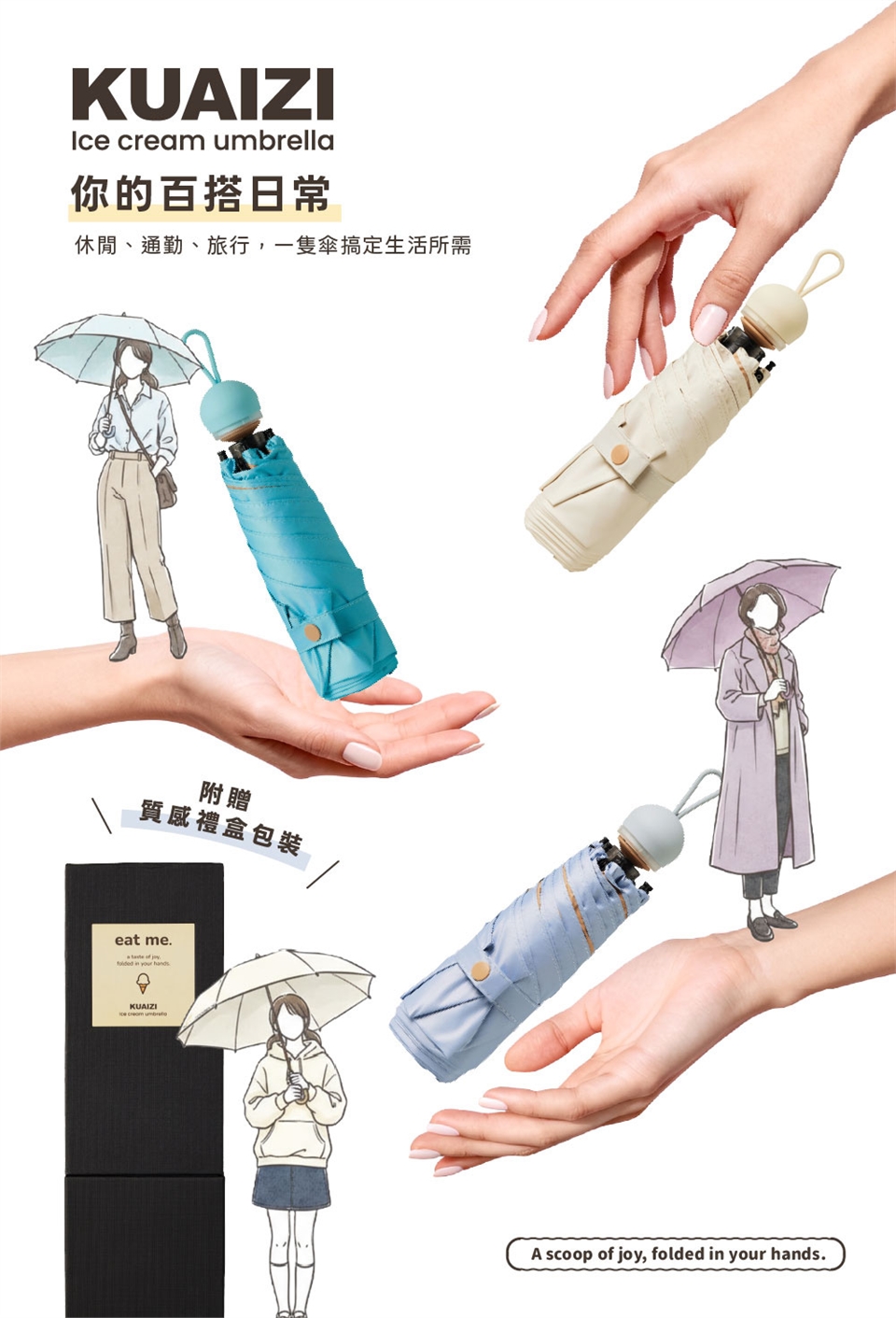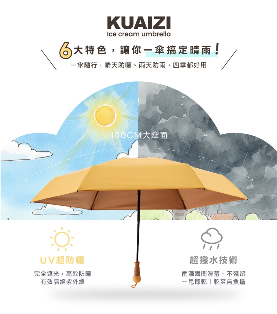 - 超撥水傘布,雨滴秒滑落,拒絕黏膩感