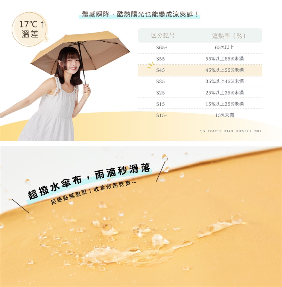 傘布材質:100%聚酯纖維+COOL BLACK黑冰 20D高密三層輻射遮斷技術