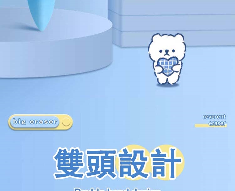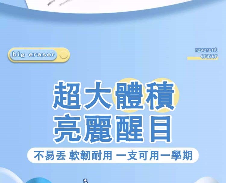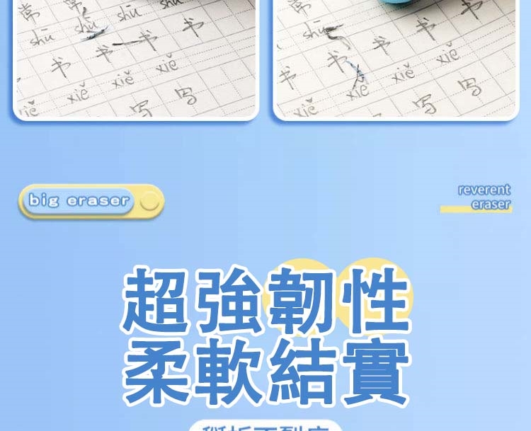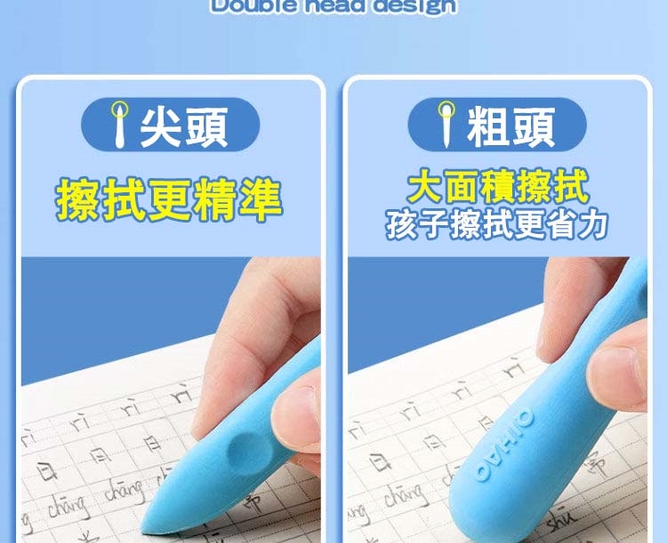 - 實用性:雙頭設計,尖頭精準擦、粗頭大面積擦,適合幼齡兒童及學生