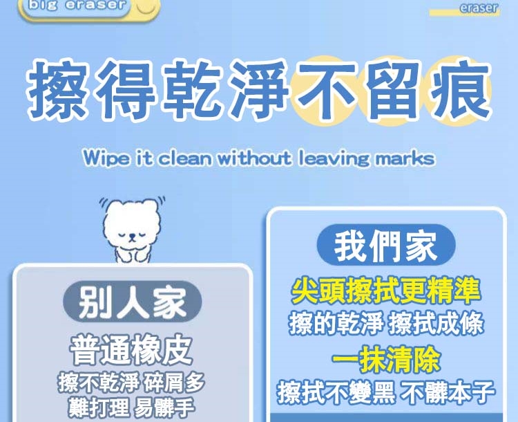 - 擦淨力:擦得乾淨不留痕,不髒本子