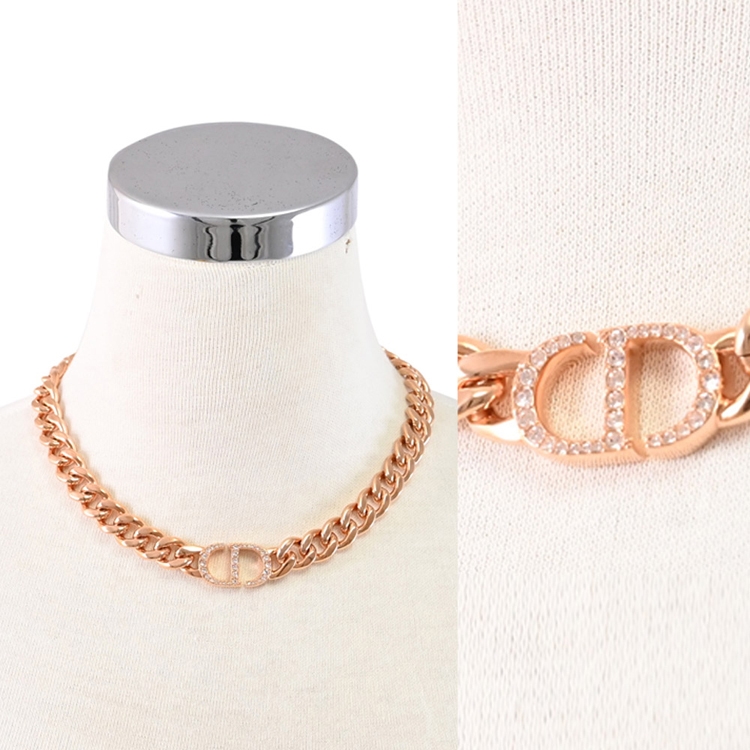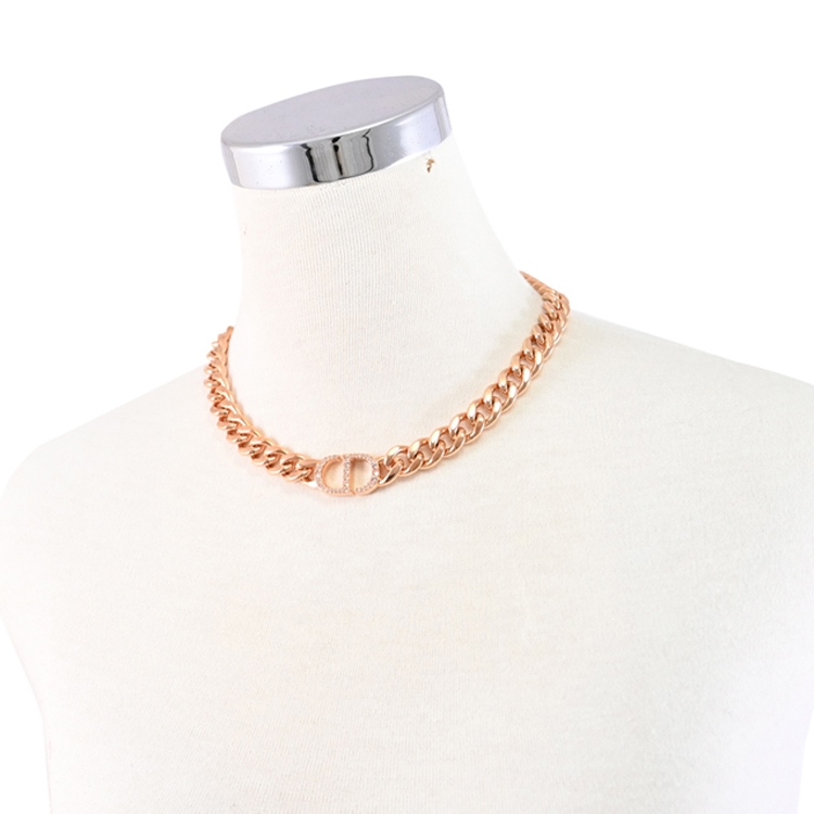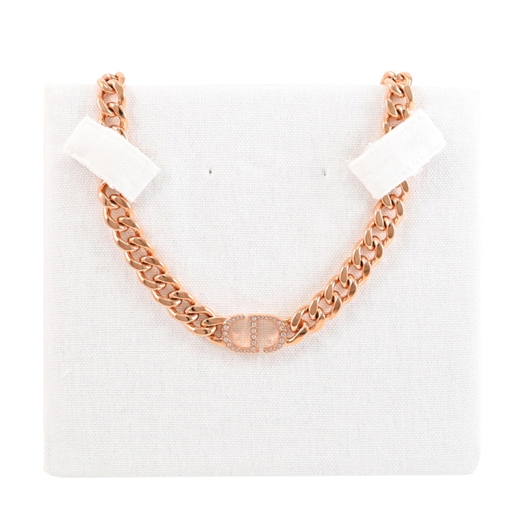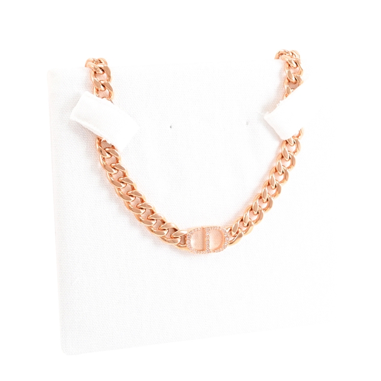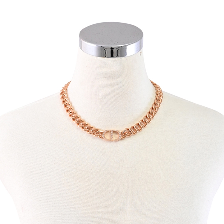 專櫃經典新款30 Montaigne系列項鍊配件,採用金屬粗鏈設計,玫瑰金飾面金屬並鑲嵌水鑽,顯現不凡品味,低調奢華感,深受許多時尚部落客、好萊塢女星愛戴,無論送禮或自用皆適宜!