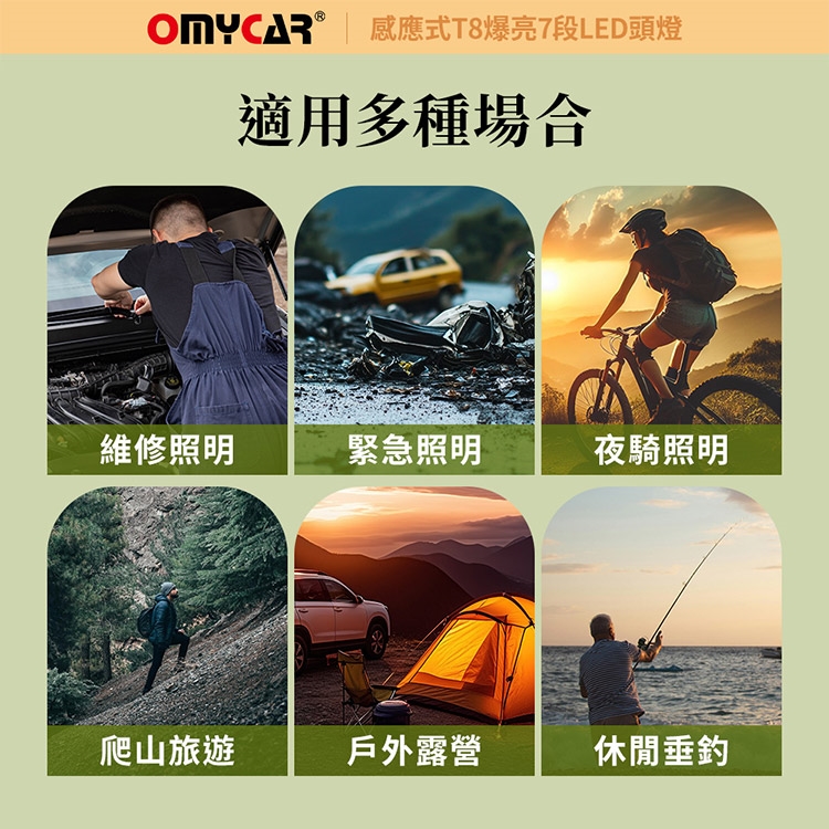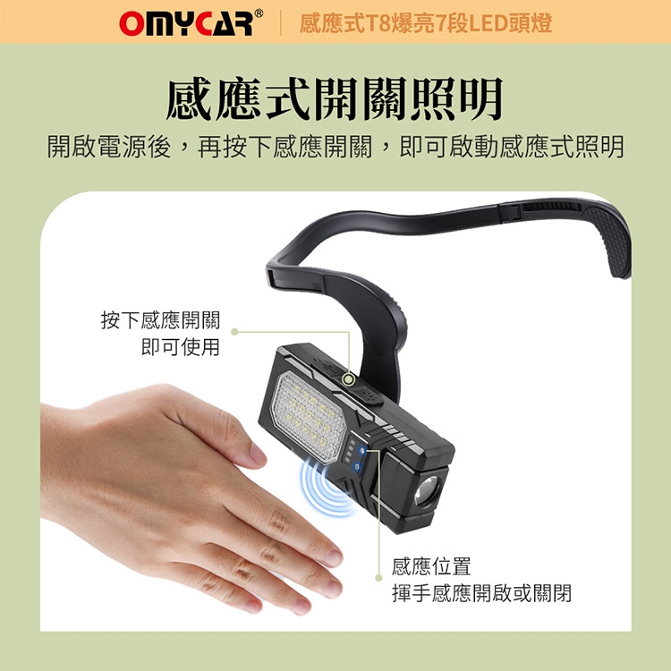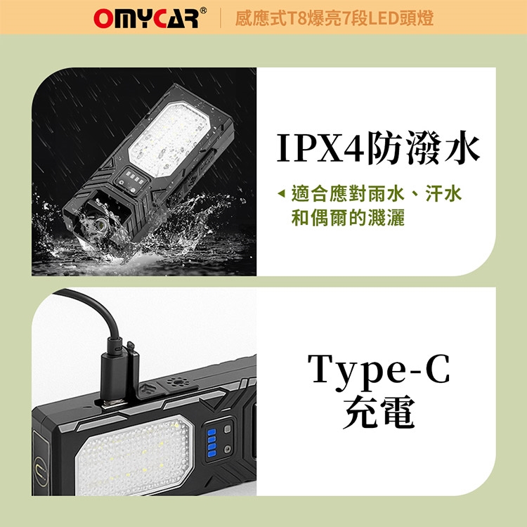 商品品名:【OMyCar】感應式T8爆亮7段LED頭燈