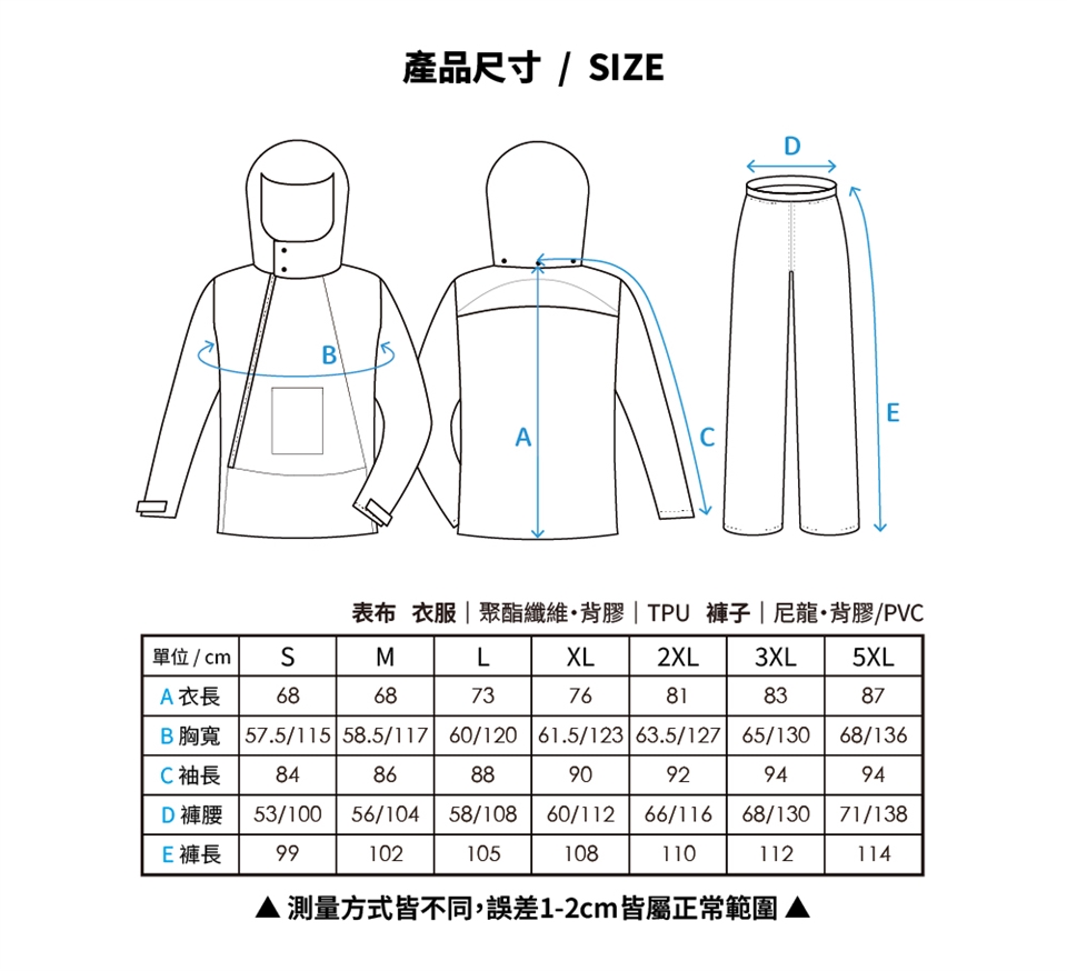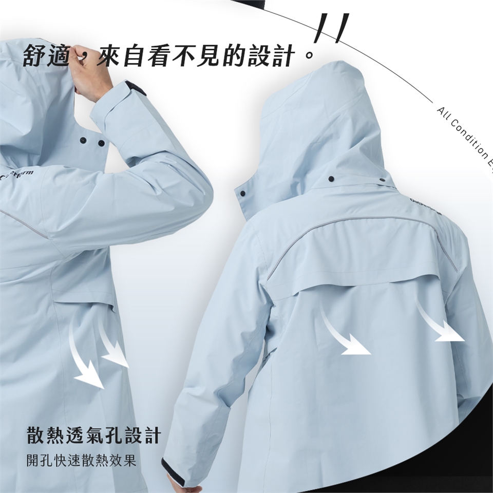 雨衣穿著時,請務必將拉鍊/扣子正確拉/扣上,並配戴雨帽,避免漏水