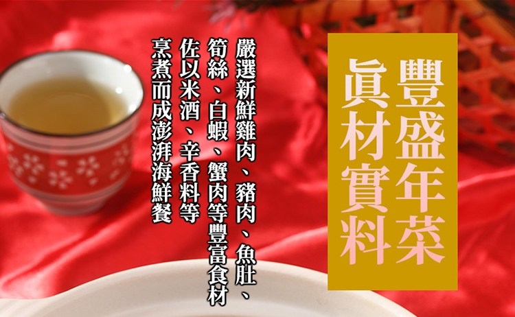1. 接單限制:年菜商品配送限台灣本島,恕無法貨到付款。