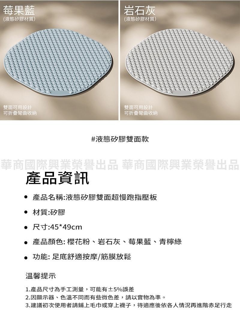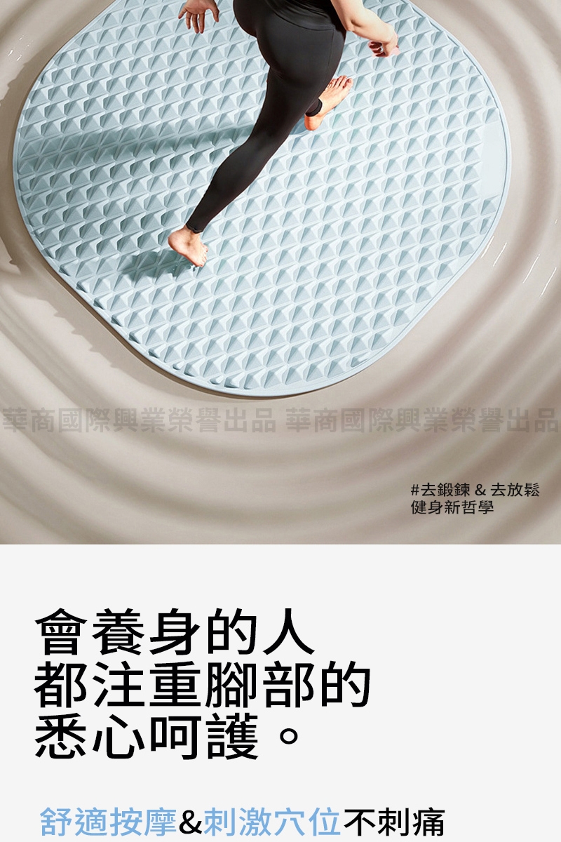 3.建議初次使用者請鋪上毛巾或穿上襪子,待適應後依各人情況再進階赤足行走
