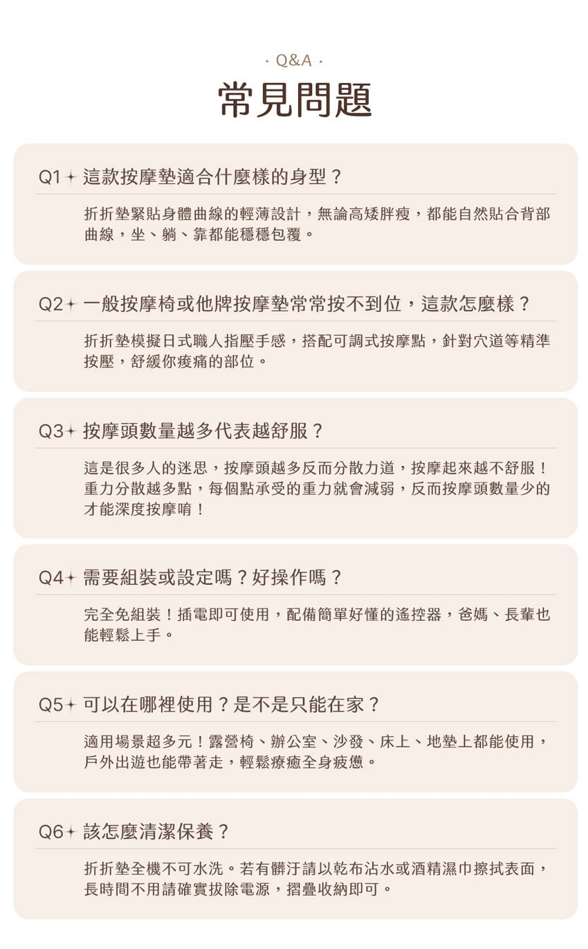 ※ 懷孕期間、脊椎骨傷痛、急性疾病、心臟病等身體有異常狀況者,使用前請務必先諮詢醫師。