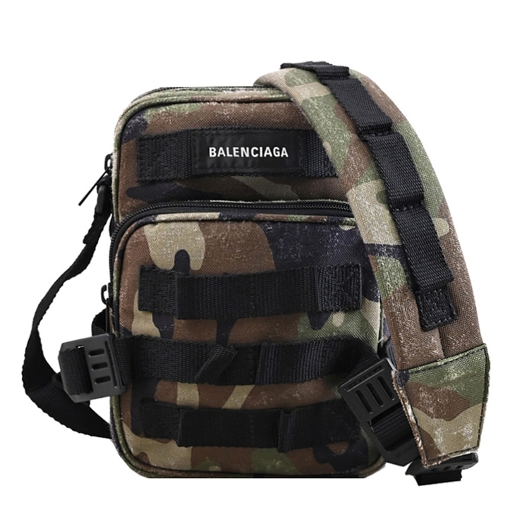 BALENCIAGA專櫃熱賣Army系列斜背小包,採用迷彩帆布材質+刷舊毛邊設計,搭配品牌經典電繡LOGO,拉鍊開口,內1貼袋+外1拉鍊袋可收納,內可放皮夾、鑰匙、手機等小物,可斜背、側背使用,是近年最夯的小包系列,低調個性,都會時尚感,搶眼又好搭風格。