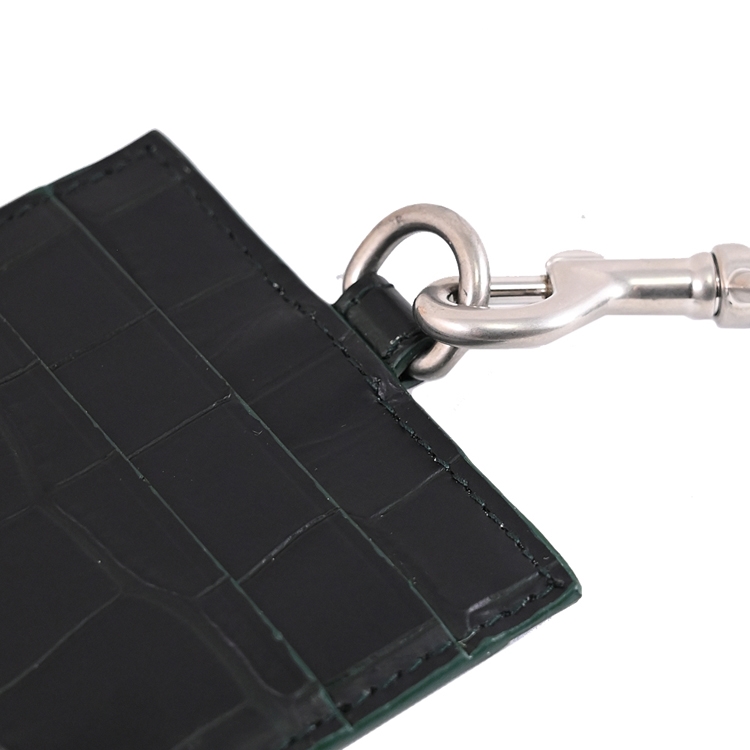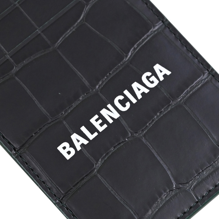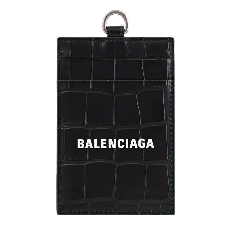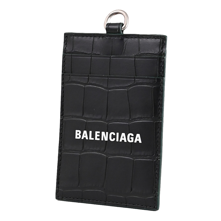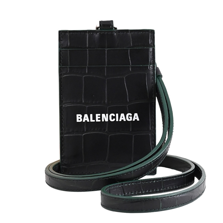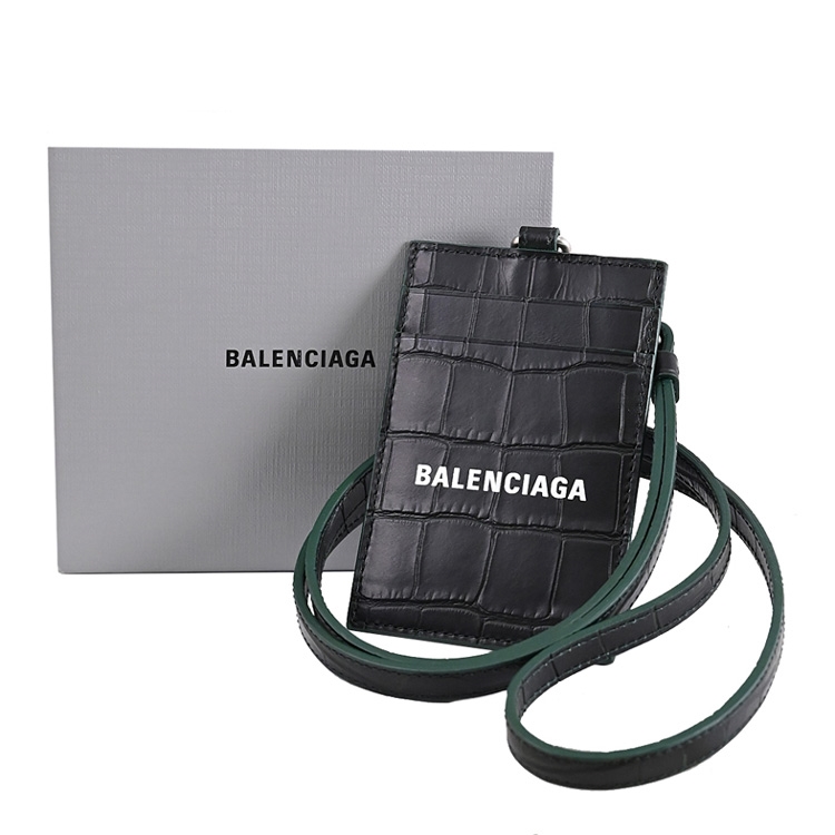 BALENCIAGA專櫃頸掛式識別證證件夾,採用經典鱷魚壓紋材質搭配品牌LOGO造型,外2卡夾層+1透明夾層,附上活動式的皮革掛帶,可拆下做其他用途,精緻小巧可輕易放入各種小包,實用性設計便於攜帶。