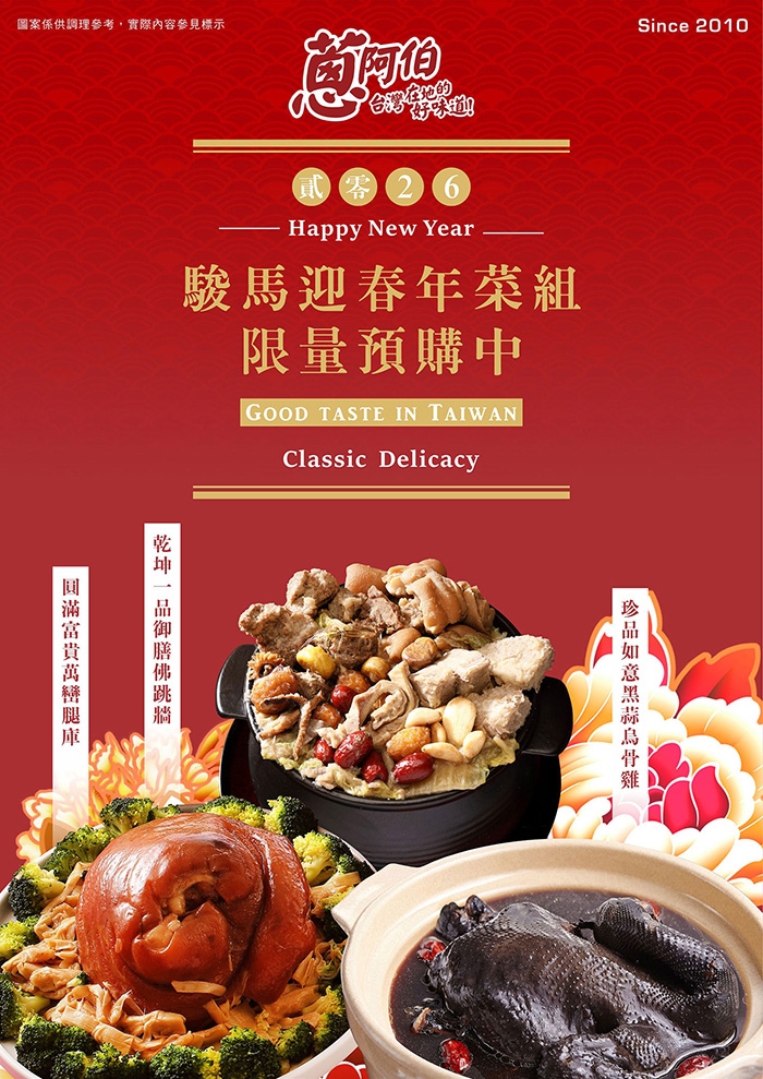 1. 接單限制:年菜商品配送限台灣本島,恕無法貨到付款。