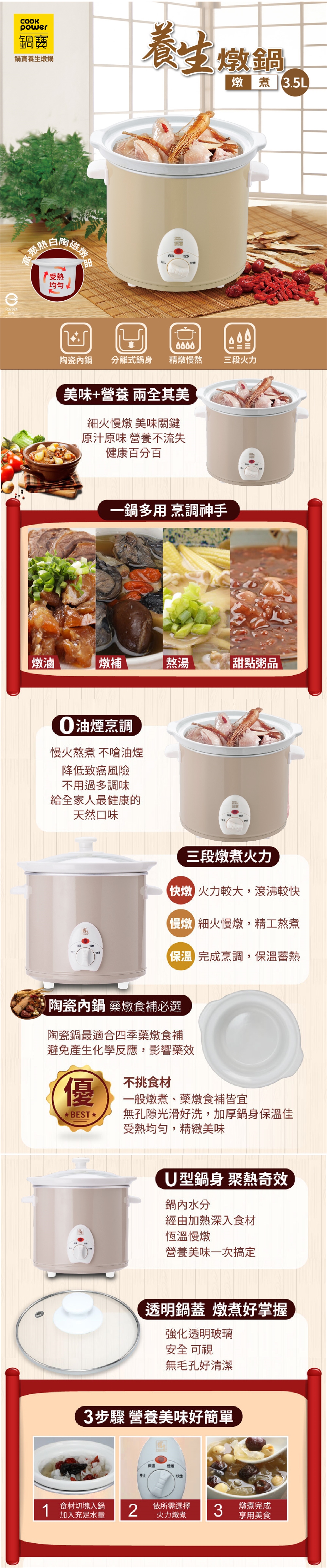 ◎快燉、慢燉、保溫三段功能,適合各式燉煮食材