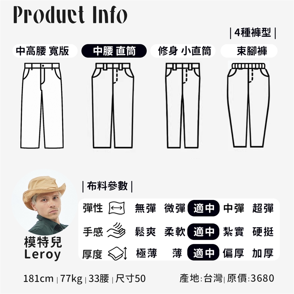 我們的堅持在於使用好的材質、簡單設計,不斷的開發順應時代潮流 開創出屬於成熟男性的自我風格,每一季穩定設計多樣化的褲款