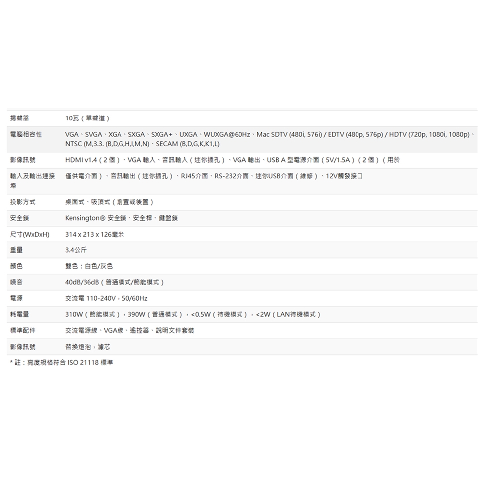 -高亮度4,800ANSI流明,可在明亮的會議室中投影。