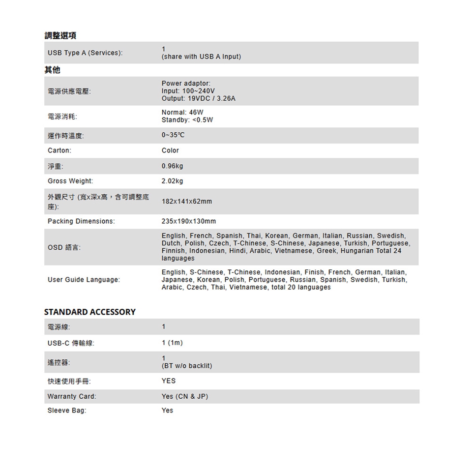 -外觀尺寸 (寬x深x高,含可調整底座): 182x141x62mm