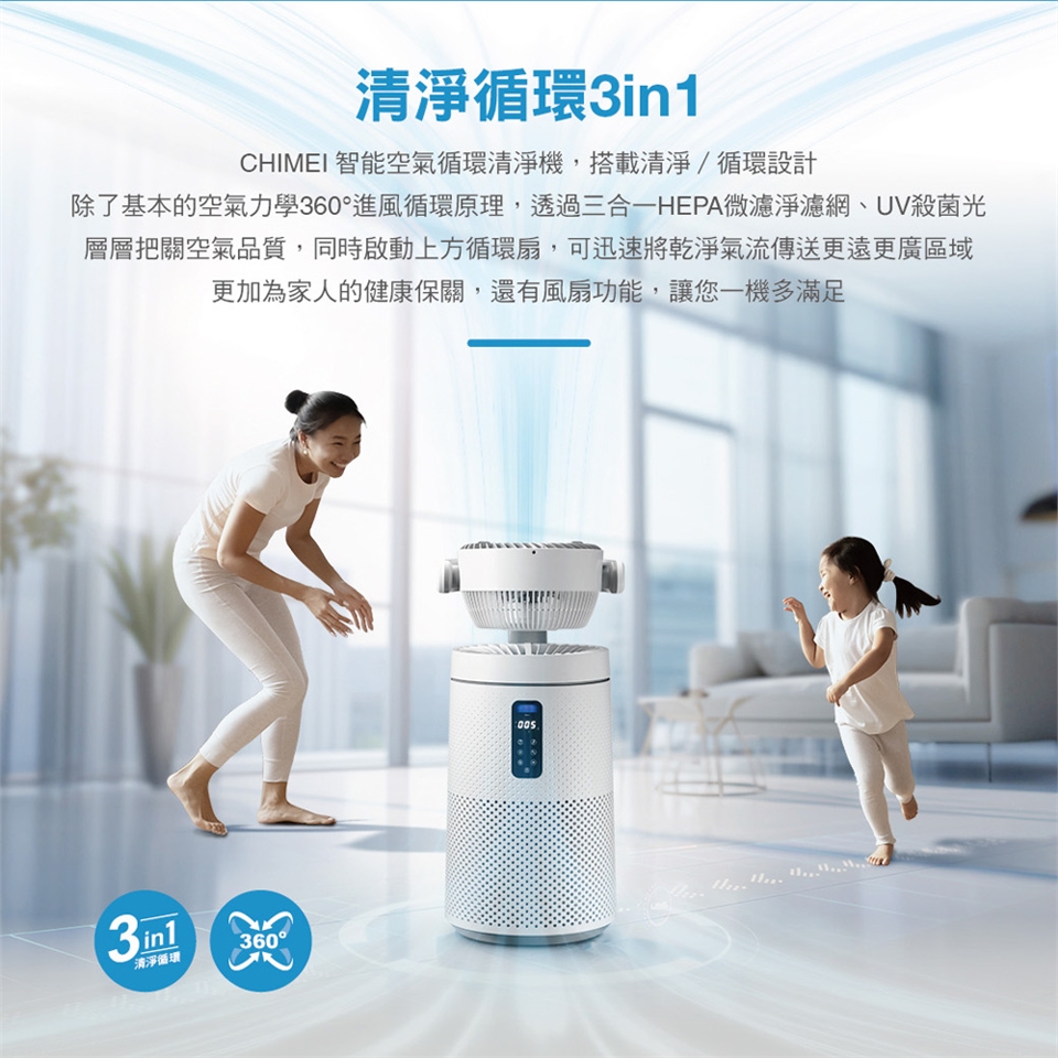 *清淨循環3合1(風扇、UV淨化、循環扇),一機多滿足
