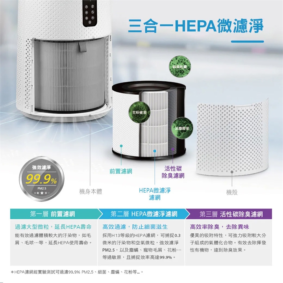 *三合一HEPA微濾淨,去味除臭強效濾淨PM2.5