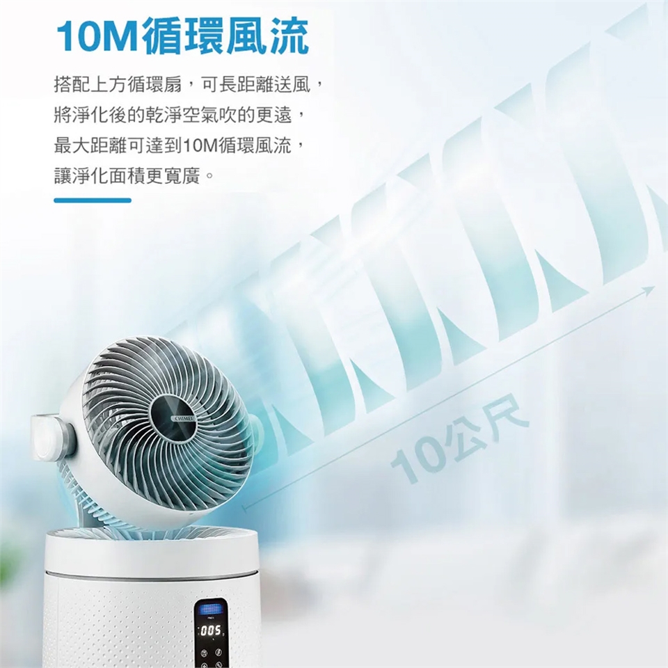 *10M循環風流、長距離送風,淨化面積更寬廣