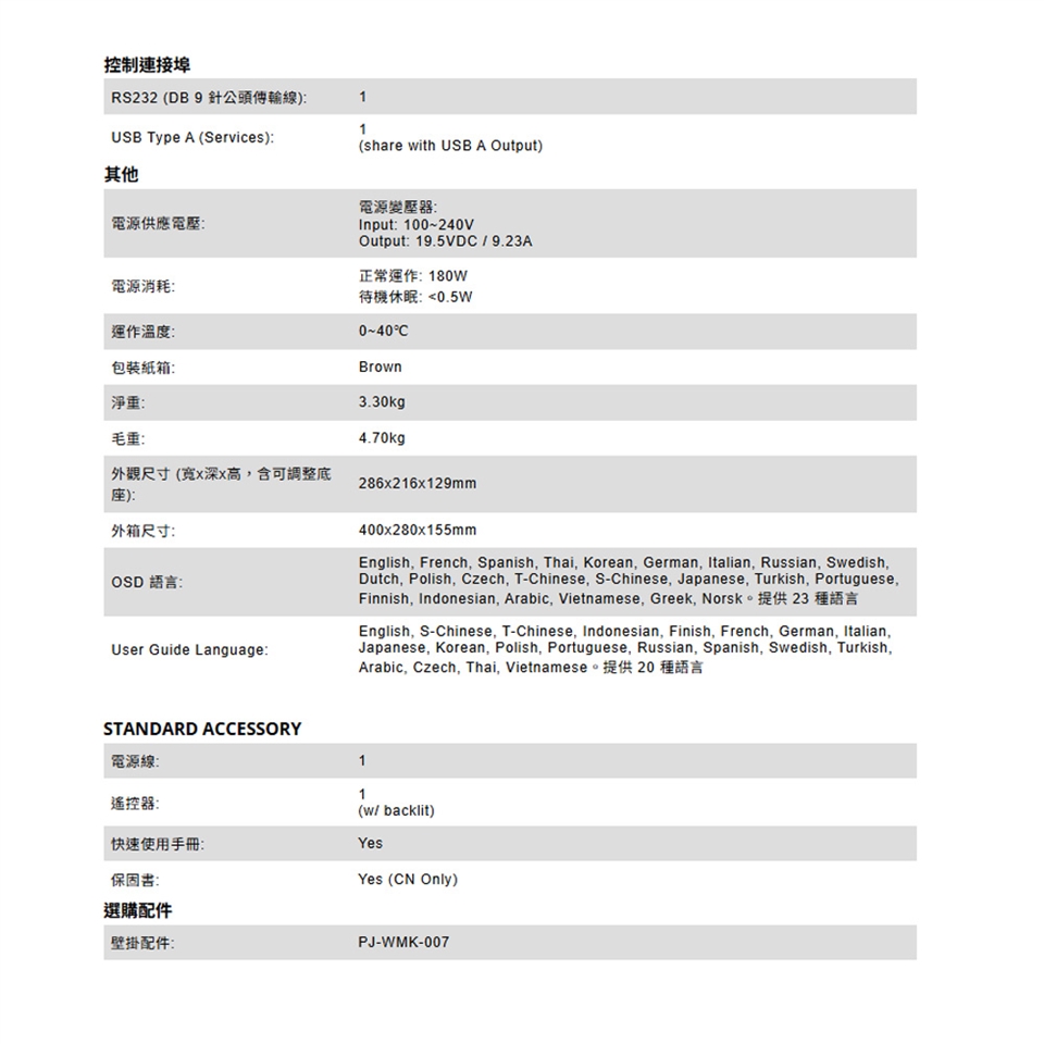 -外觀尺寸 (寬x深x高,含可調整底座): 286x216x129mm
