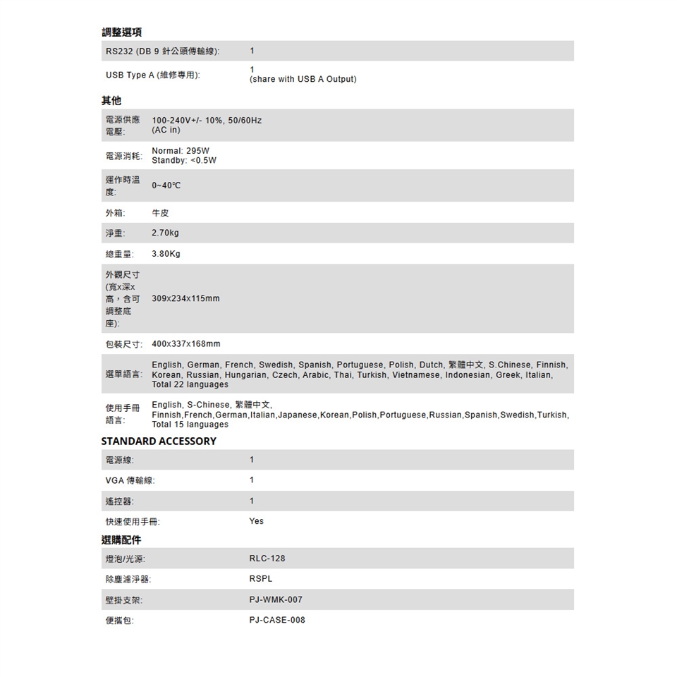 -外觀尺寸 (寬x深x高,含可調整底座): 309x234x115mm
