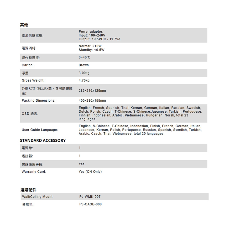 -外觀尺寸 (寬x深x高,含可調整底座): 286x216x129mm