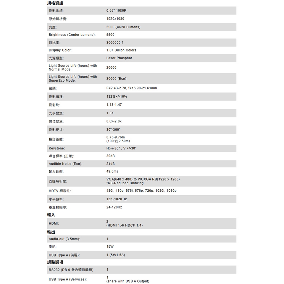-提供 5,000 ANSI 流明的亮度,無論在任何環境下都能呈現明亮的影像