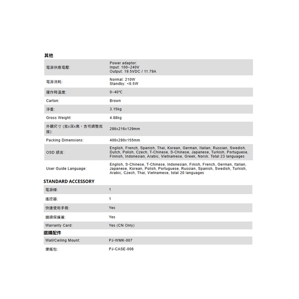 -外觀尺寸 (寬x深x高,含可調整底座): 286x216x129mm
