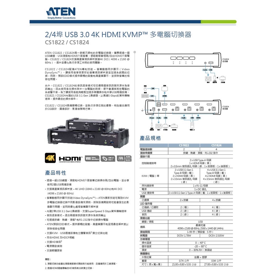 支援高畫質視訊解析度 - 4K UHD (3840 x 2160 @ 60Hz)和4K DCI (4096 x 2160 @ 60Hz)