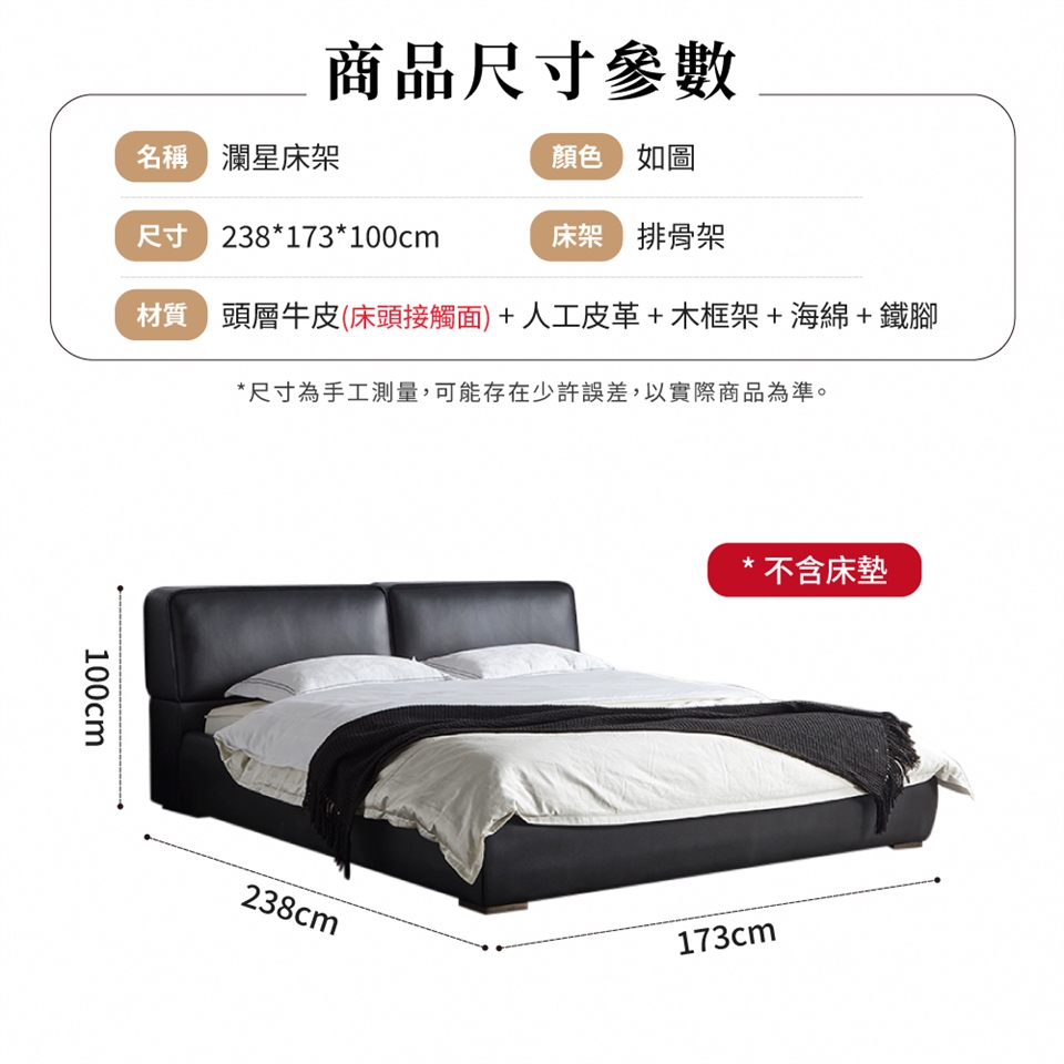 材質:頭層牛皮+人工皮革+木框架+海綿+鐵腳